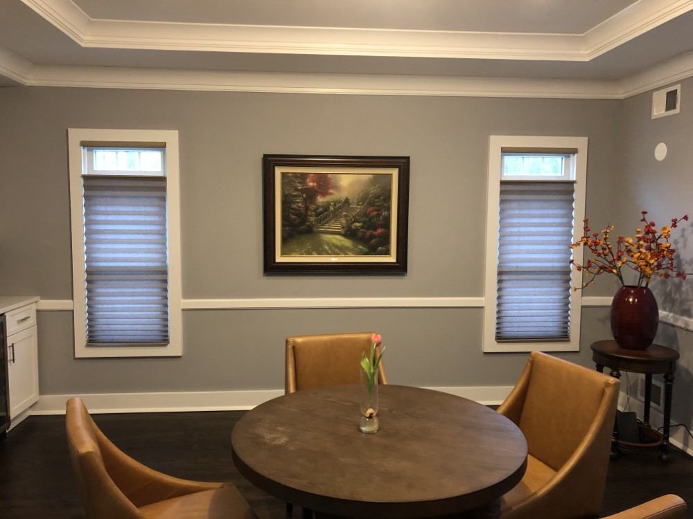 Graber 2 inch single pleated textured shades with a cordless lift system, with top down/bottom up feature. Adding insulation and Energy efficiency, will providing privacy and natural light.